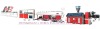 PVC dual- pipe production line 1. Spring Loader 1) driving power: 1.1KW 2) conveying capacity rated: 300kg/h 3) conveying capacity max.: 450kg/h 4) conveying distance: 3-5m 5) conveying spring diameter: 36mm 6) conveying spring speed rated: 900rpm 2. SJS-Z51/105 conical twin-screw extruder 1) output capacity: 130-180kg/h 2) screw diameter: 51/105mm 3) Material of screw and barrel: 38CrMoAl with nitride processing. 4) Effective length of screw: 1065mm 5) Thermoregulation system for screw core cooling: oil 6) Screw speed: 1-37rpm 7) Rotation direction of screw: opposite 8) Heating zones for barrel: 4 9) Main motor power: 22KW 10) Speed changing method for driving motor: frequency changed 11) Gearbox: low noise. 12) Cooling method for barrel: blowing air 13) Feeding screw speed: 3.5-47rpm 14) Speed changing method for feeding screw: frequency changed 15) Extrusion center height: 1000mm 16) Power source: 3 phase, 415V, 50 Hz 17) The indicator for speed of main driving should be digital meter 18) There are meters and provision for magnetic stop and melt pressure indicator on the panel 19) The current and rotating speed of the driving motor should be digital meter. 20) The feeder meter should be digital. 21) Melt Pressure Transducer 3. Dual-strand Die & Mould system for PVC pipes Complete due system according to requirements: Basic die: No. 45 steel forging; head: 40Gr forging, coated hard chromium on surface, fixed-diameter with brass sleeve polishing treated (coated hard chrome). Heater should be better as our first order. Pipe specifications are following: 20, 25, 32, 40 4. SZK-50 Dual-strand Vacuum Calibrating and Spray Cooling Tank 1) length: 5500mm 2) table material: stainless steel 3) spray nozzle material: nylon, should be better as first order 4) calibrating ring: cooper 5) cooling method: spray 6) vacuum pump power: 4 KW 7) water pump power: 4 KW 8) adjust movable range: ±600mm (length adjustment driving by motor) ±120mm (height adjustment) ±50mm (cross adjustment) 5. SQG-50 Dual-strand Caterpillar haul-off 1) suitable pipe diameter: 20-50mm 2) haul-off length: 950mm 3) haul-off speed: 0.4-25m/min 4) clamping method: pneumatic 5) haul-off forces: 6500N 6) driving power: 0.75 KW × 4 7) control mode: traction speed controlled by extruder 8) speed adjusted: frequency conversion 9) haul-off center height: 1000mm 6. SYJ-50 Dual-strand cutting unit 1) suitable pipe diameter: 20-50mm 2) cutting power: 1.1KW×2 3) cutting saw knife diameter: 230mm 4) cutting knife material: alloy steel 5) clamping method: pneumatic 6) there is dust collector for dust with blower sucking system 7) cutting length control: pre-set length, cutting automatically 7. SFL-50 unloading Table 1) length: 6000mm 2) unloading method: pneumatic 3) material: stainless steel